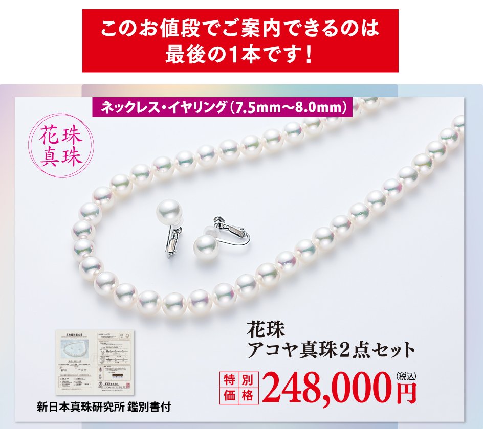 アコヤ真珠最高品質の証「花珠真珠」も特別価格